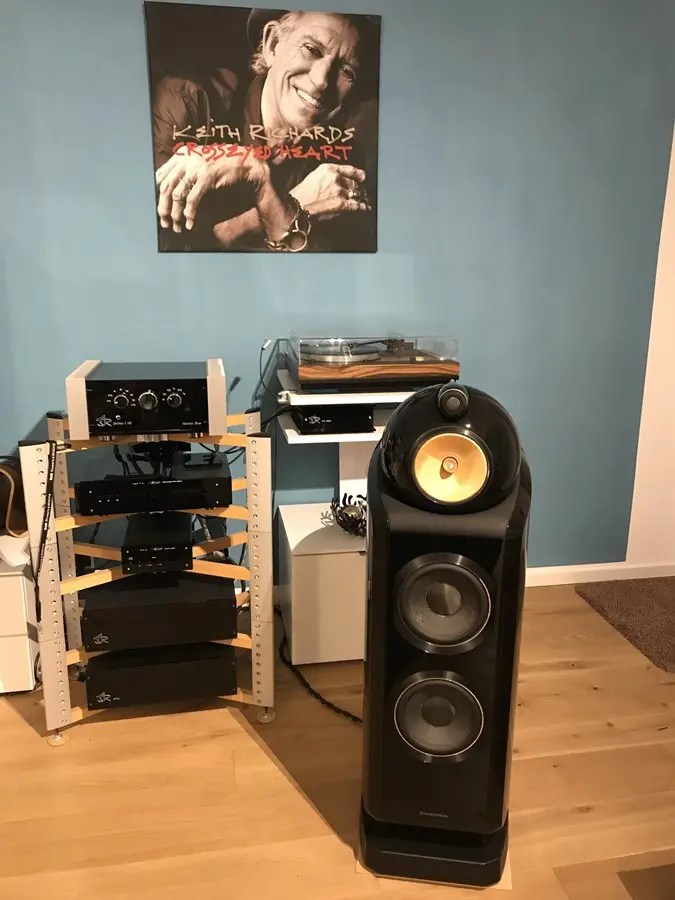 Peter betreibt seine Lautsprecher: Luna Audio -Testos Reference - und die beliebten B&W 802 Diamond, im Wechsel, an einem Emitter I Exclusive + Akku. Zudem wird sein Plattenspieler durch die Basis Exclusive HV verstärkt.