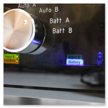 Der Ausgang ist ebenfalls mit Cinch- und symmetrischen XLR-Anschlüssen ausgestattet. Die beiden Eingänge verfügen über zwei getrennte Eingangsstufen und sind unabhängig voneinander einstellbar. Eine signalgesteuerte Automatik schaltet das Hauptgerät in den Akkubetrieb.