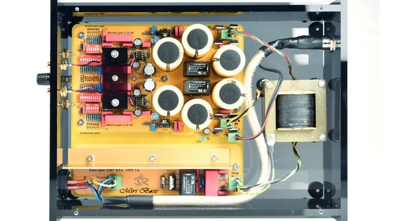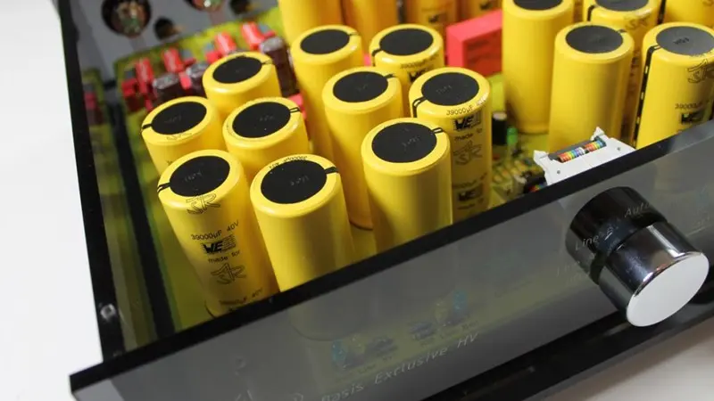 Eine Siebkapazität von insgesamt 1.300.000 uF und ein externes Akku-Netzteil sorgen für eine extrem stabile und saubere Stromversorgung.