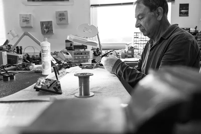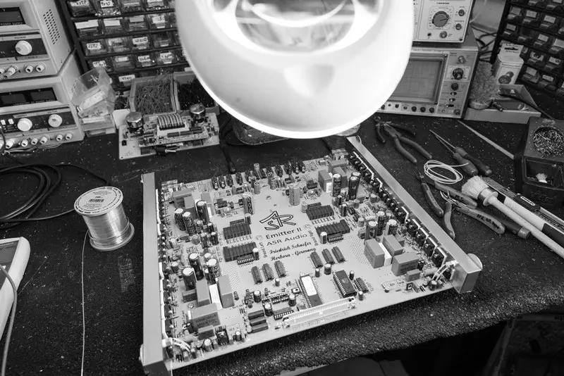 Jeder Verstärker wird von erfahrenen Technikern in sorgfältiger Handarbeit aufgebaut, geprüft und individuell feinjustiert. Dabei kommen ausschließlich selektierte, hochwertige Bauteile zum Einsatz, die zuvor unseren Qualitätskontrollen unterzogen wurden. Diese kompromisslose Vorgehensweise gewährleistet eine überragende Verarbeitungsqualität und eine außergewöhnliche Langlebigkeit – viele ASR-Geräte sind seit Jahrzehnten im täglichen Einsatz.
